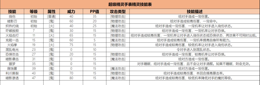精灵解析:普通野生精灵,整体种族值一般法攻较高。没有大威力技能,有个特殊技能噩梦。优先级不高。