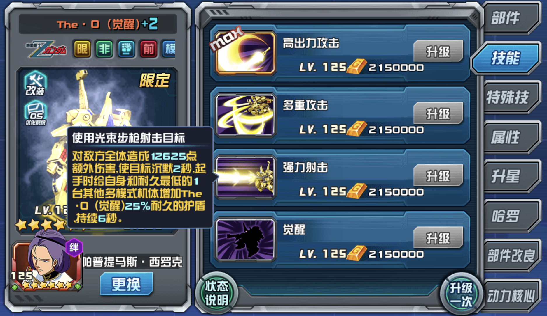 搭载了当时先进的准塞可缪系统、拥有高机动性能的The・O(觉醒),在《敢达决战》的战场上会有什么精彩表现呢?让我们一起来看下它的技能介绍吧!