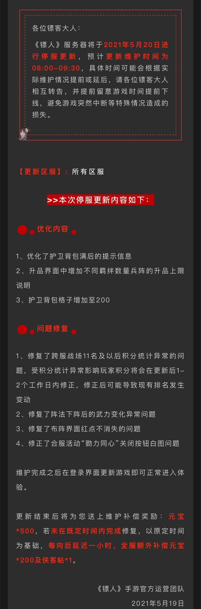 更新公告丨5月20日停服维护更新公告