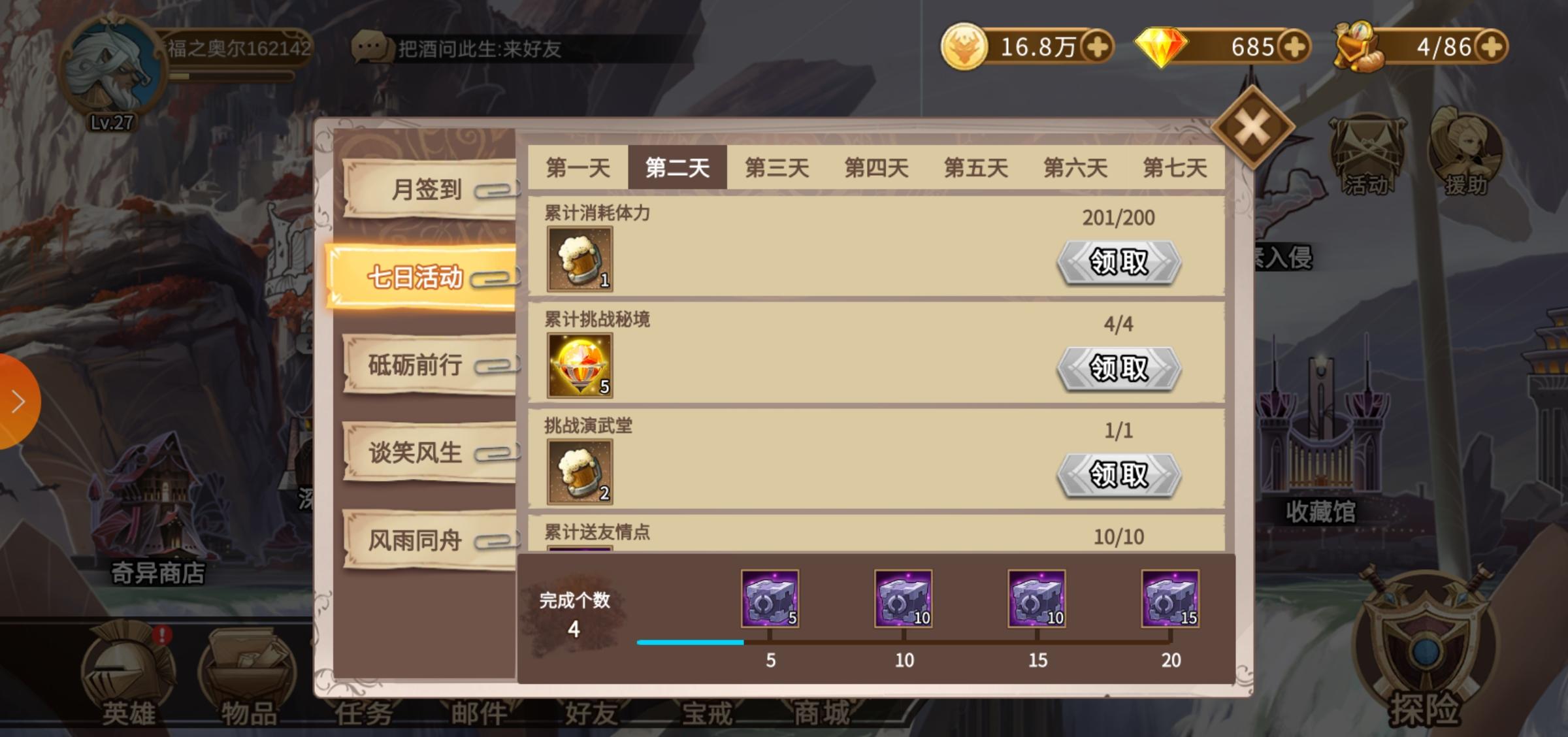 第二天已完成的任务没办法领取物资!!!