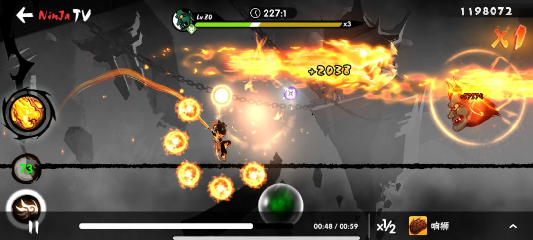 现在版本,经过我的测试得出一个基本比较好用的炎龙命中的方法。在面对boss体积大于等于鬼头的情况下(如青面鬼,波若,头陀,龙类,大宝剑,式神,沙克等),若boss纵轴移动较小或不动的情况,只需要将身位调整到和boss在一条直线上,然后点击漂浮,基本炎龙可以全部命中,或者只空一条。