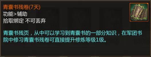 当封魔等级达到130级时,还能够获得青囊书残卷,可以用于在军团书院中提升青囊书修习等级。