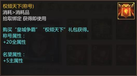 同时,礼包中还包含称号—权倾天下。