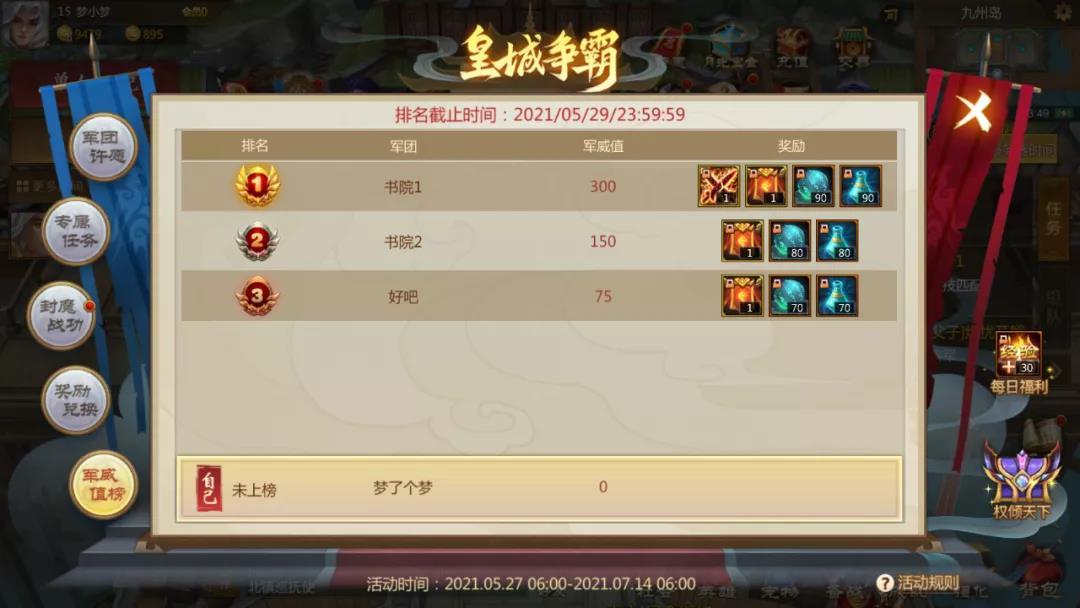 以上就是本次皇城争霸活动的全部内容啦,梦梦已经等不及活动开始了呢。