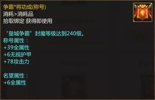 而最终,当大家的封魔等级达到240级时,便可以获得称号—争霸*将功成!