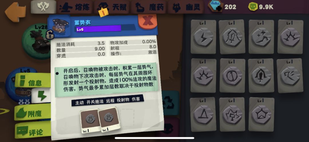 法杖召唤出的怨灵竟然是无敌状态但是有实体,这样蓄势衣就能起作用了,而且蓄势衣的环形投射物不会消失,这样旋风头也会起作用了,除非你动武器了或者死了。前100关的boss没怎么看就死了,伤害溢出的厉害