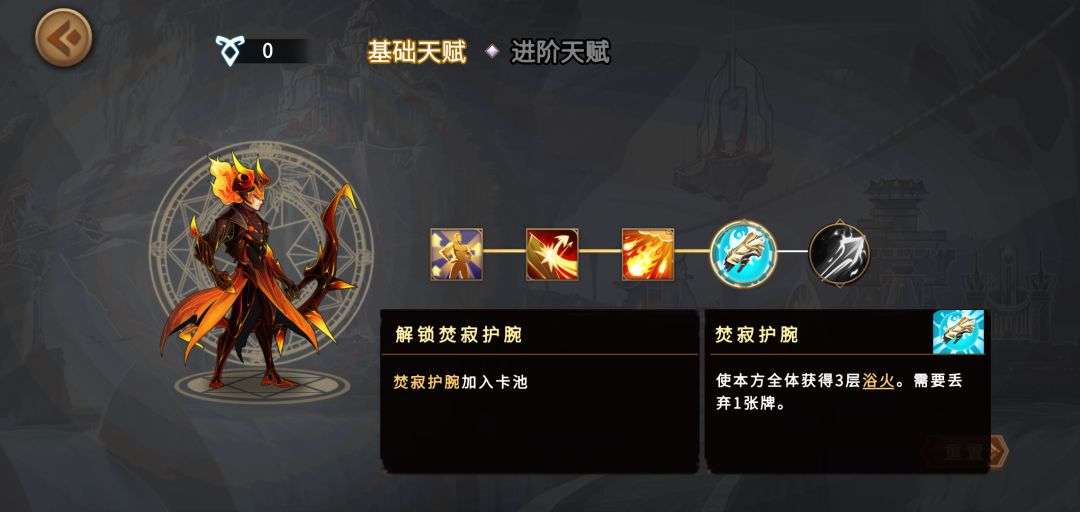 焚寂护腕获得浴火状态,配合多段攻击高效挂火,浴火+乱炎能叠6层灼烧效果。