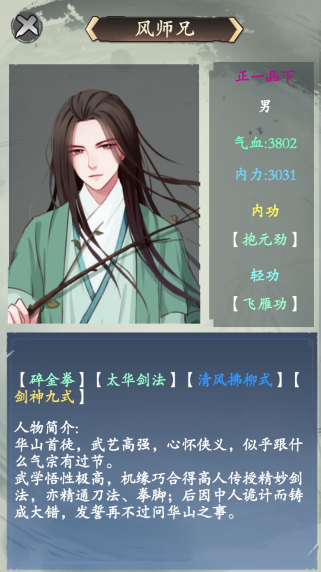 调教风师兄到正一品,然后喂友好到肝胆相照,然后点借剑,然后风师兄独孤九剑神挡杀神