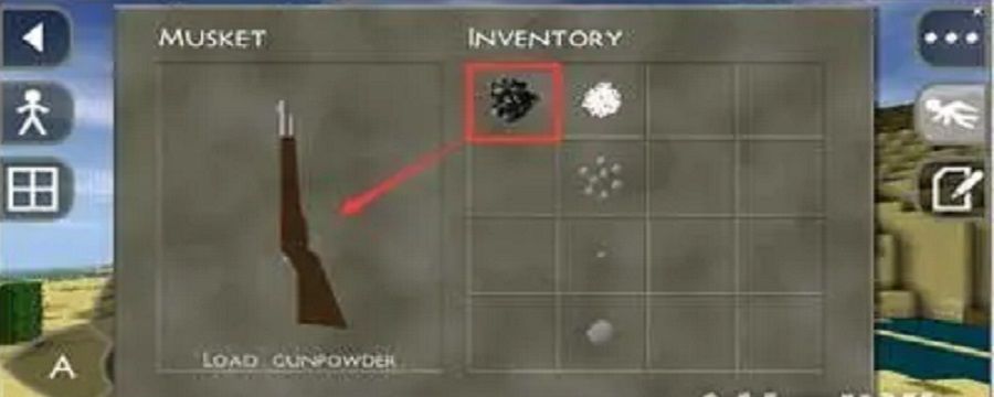 在主界面,玩家将火药、火枪、棉花、弹药都在快捷栏准备好。然后直接拖动火药到快捷栏中的火枪上,就可以安装完成。棉花也是、弹药同理,这样就完成了弹药的填装了。这样不用再打开火枪的单独界面,方便、快速。值得注意的是,火枪一定要先装火药,再装棉花,最后装子弹。