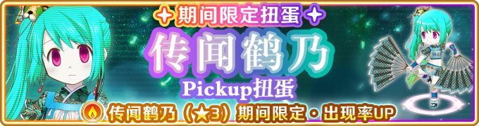 在「传闻鹤乃 Pickup扭蛋」中,★3魔法少女·传闻鹤乃(CV. 夏川椎菜)、★4记忆结晶「融——合!!」以及★3记忆结晶「心意,尚未相通……」的提供比例将会提升。