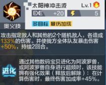 奥义技:攻击指定目标和其他两个随机目标,各造成133%的伤害。并使我方全体队友暴击伤害加50%,持续两回合