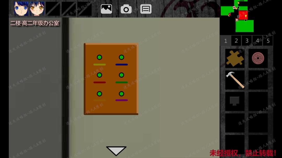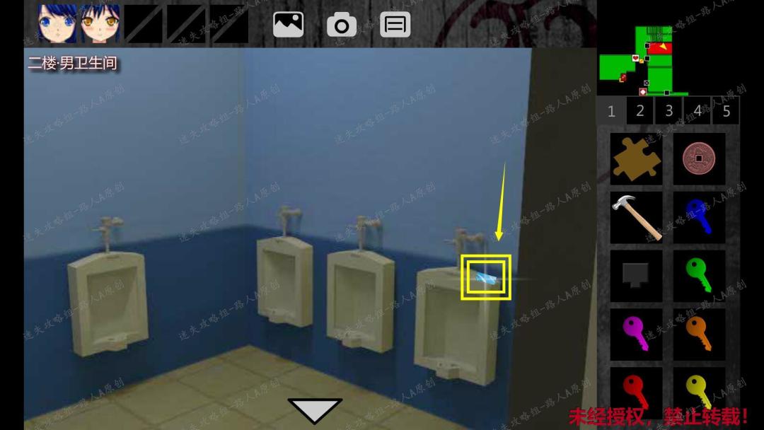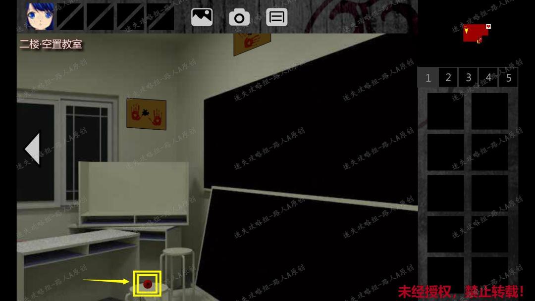 15. 把【拼图】放入黑板上方的拼图凹槽(三个血手印),小琪被传送到二楼女卫生间。15.1