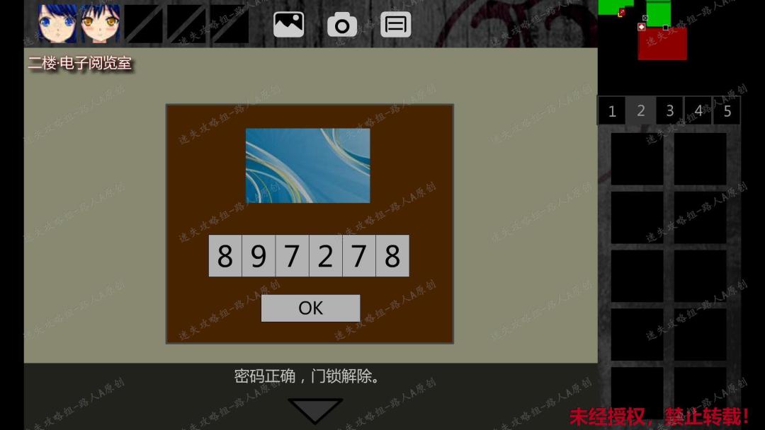 26. 从电子阅览室进入二楼东侧廊拐角,剧情过后,前往一楼东侧廊,素素发现密码:0807。26.1