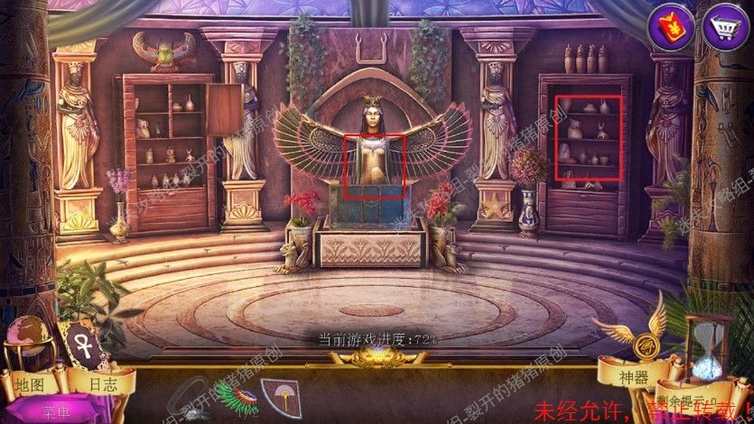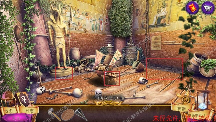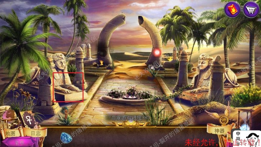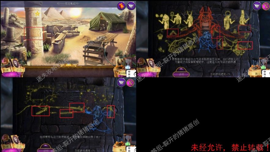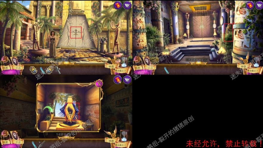 19.在我们重新排列好红色宝石之后进入寻物,完成后拿到神器手套的另一部分,退回到赛特房间和右边的雕像对话,进入一个根据旁白找东西游戏,完成游戏后我们拿到永生宝石。19-1.2.3