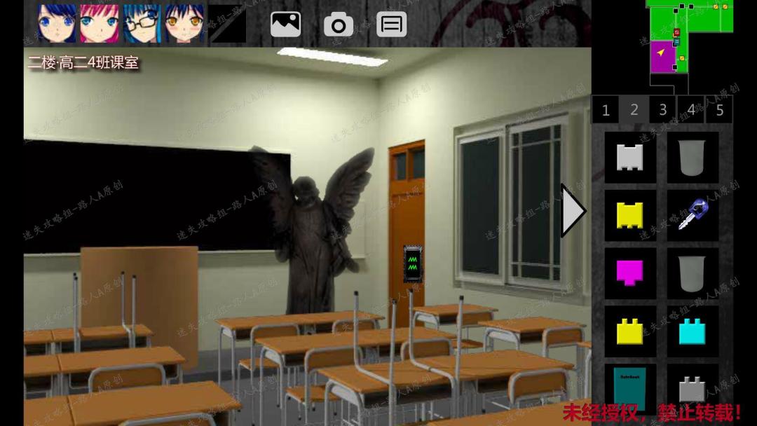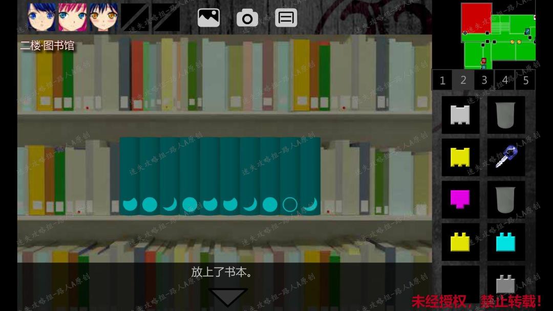 252.解开谜题后,会提示书架移开,在图书馆的灰门下方捡起【黄色方块】。253.前往三楼音乐室。点击琴旁边的门,进入三楼学科办公室,捡起【青色方块】。