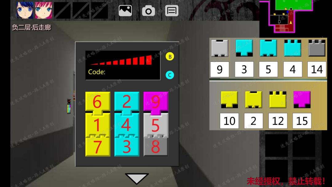 234.返回三楼中廊,把推导出的5个符号输入墙上的谜题,获得【品红色方块】。234.1