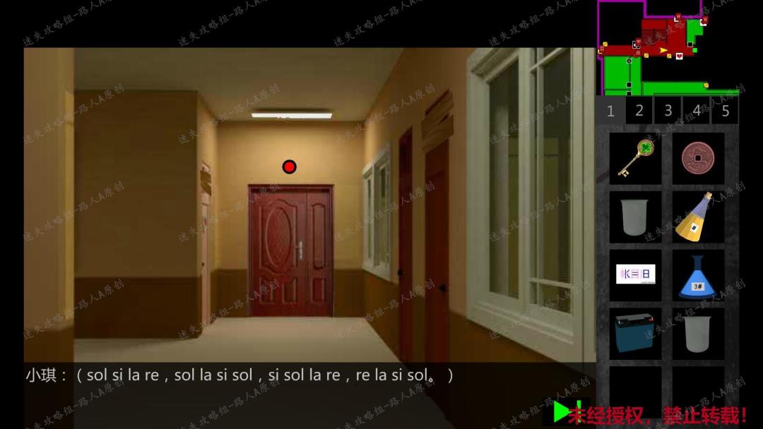 241.点击门边上的课间铃声谜题,放入4个方块,会显示对应的数字。以下图为例,显示数字分别为:2、4、12、15。而根据之前在一楼中廊得到的课间铃声提示,按照从左往右的顺序,第2个是si、第4个是re、第12个是re、第15个是si。241.1