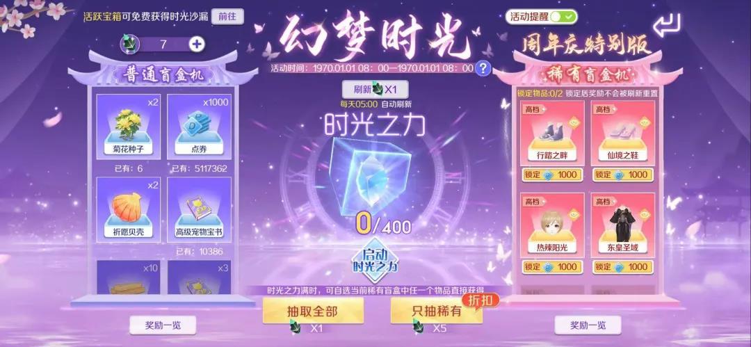 周年庆特别版时光商店全新登场啦!幻梦时光已经开启,这个周年庆快来感受抽盲盒的快落叭~