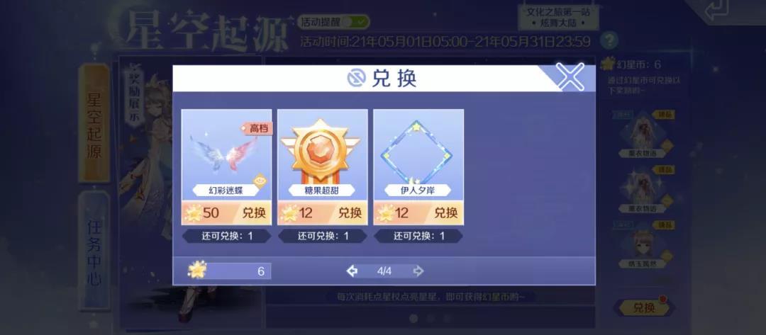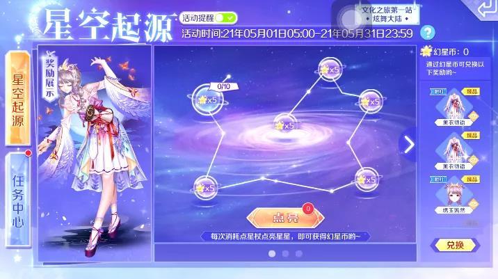 截止至5月31日,星空起源活动火热进行中!参与活动收集【星杖】,消耗星杖点亮星星即可获取幻星币,通过幻星币即可获得臻品套装(部件)的奖励,持续参与可兑换永久限定臻品-薰衣物语~