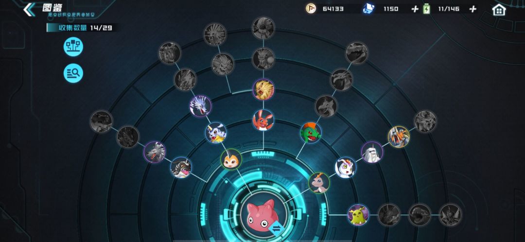 目前玩家可以获得的所有数码宝贝进化树