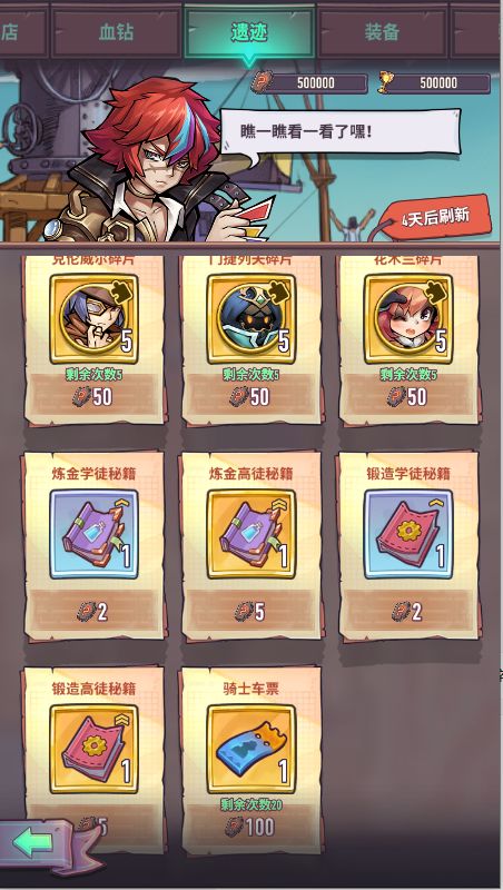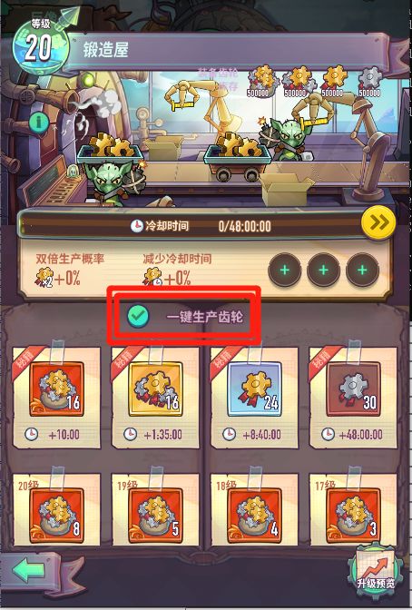 源水源铁一键生产。在锻造屋和炼金室增加源水源铁一键生产功能,帮助各位镇长更高效的获取经验药水和齿轮。