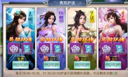 1、青岚护送有4个仙女进行选择护送,护送不同仙女奖励也有不同;