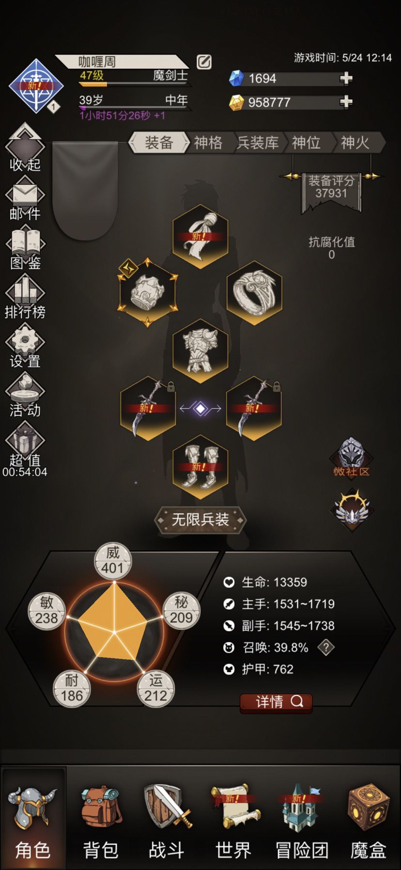 这个游戏玩了10来天,把两个礼包都冲了,钻石基本用来抽神兵了,还在探索,好像血咒挺火,就玩了血咒,有没有大神指导下,目前48级。互赞先走一波,再抽十连神兵