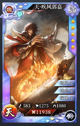 疾风郭嘉对队伍辅助能力较强,可以加强队伍内核心的生存与输出,同时具有一定的补充伤害的能力。