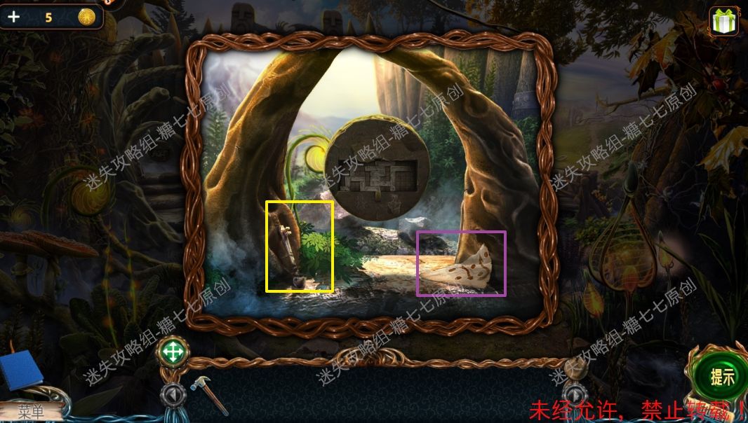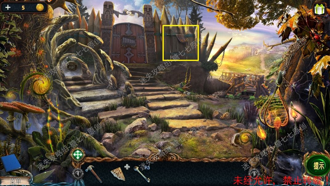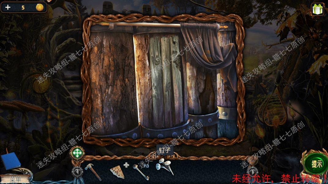 4、然后点击榔头,把锤柄和榔头组合成铁锤。5、点击左边的小路,拿到地图碎片(紫色)和木槌【1】(黄色)。5、51