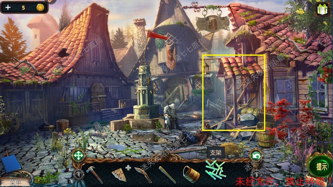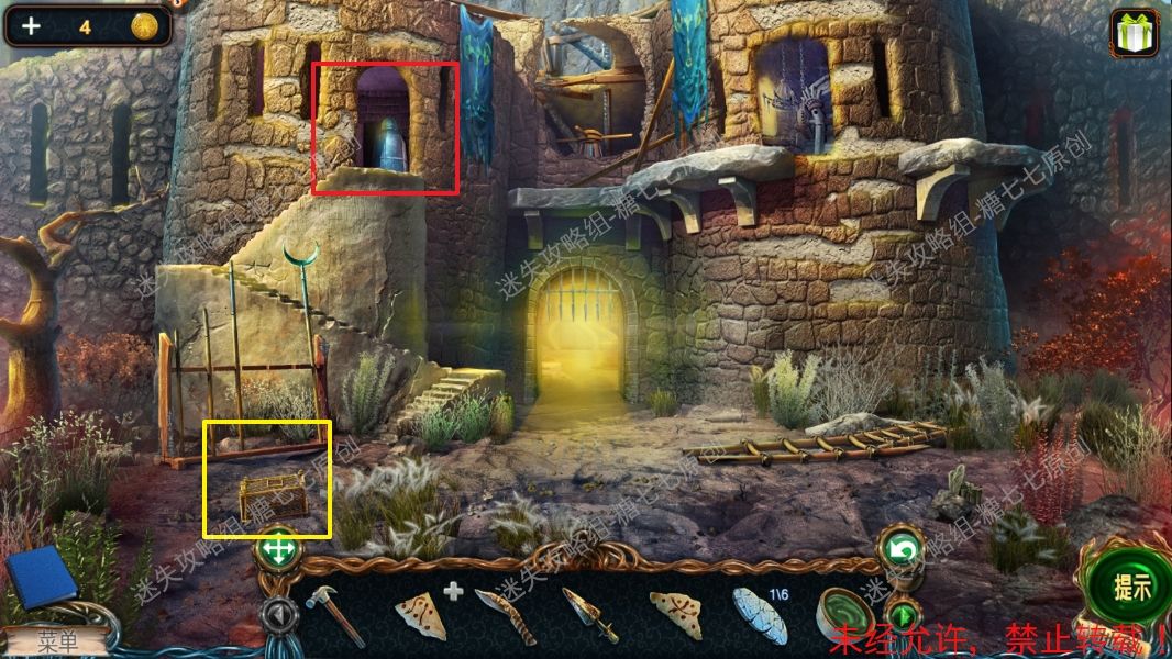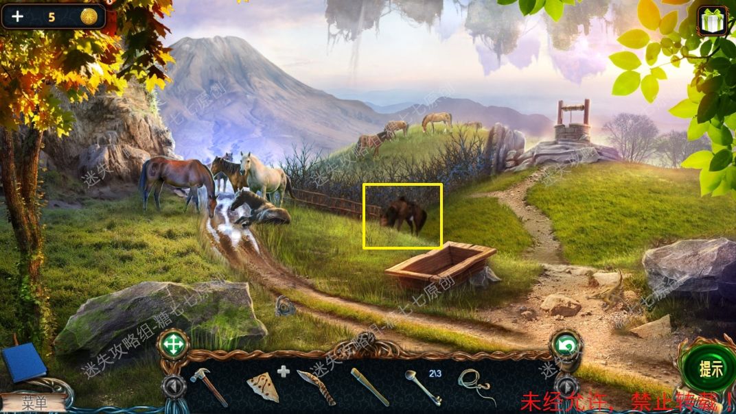 9、点击前面的马槽拿到木槌【2】和手稿【2】。9
