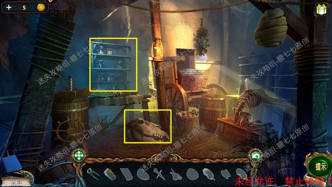 (2)桌子上拿到碗,架子上拿到松子,骷髅上拿到小刀和布,箱子里拿到龙首。262