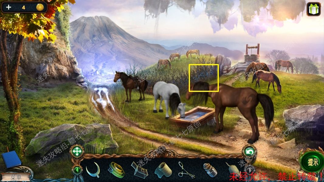 11、然后套在马身上,另一端套到刚才的水井上面。让马拉动绳子,救起女孩,得到一份曲谱。11