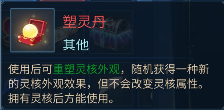 在天启神秘商店有几率刷出塑灵丹道具,使用后重塑灵核外观,随机获得一种新的灵核外观效果哦!