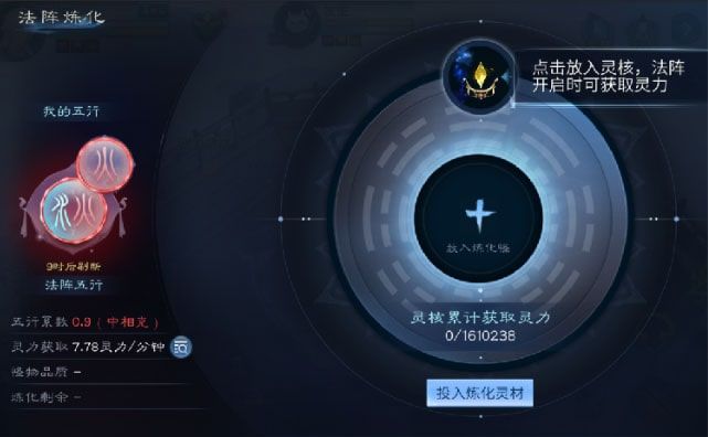 法阵五行与玩家五行之间相生相克的关系便会影响炼化速率。