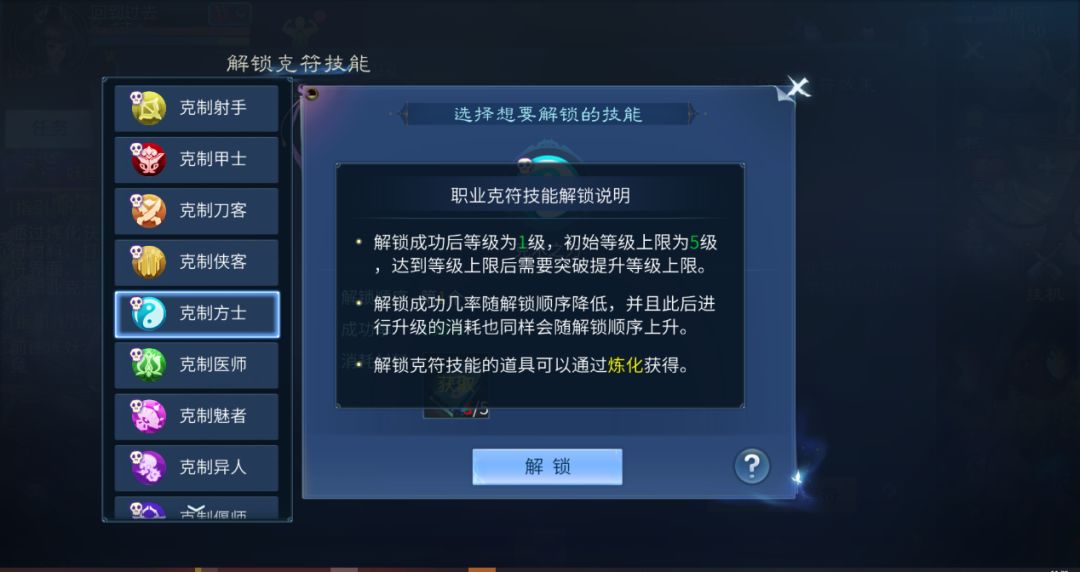 通过炼化获得道具可制作职业克符,解锁克符技能。克符技能受五行克制和灵核等级影响。