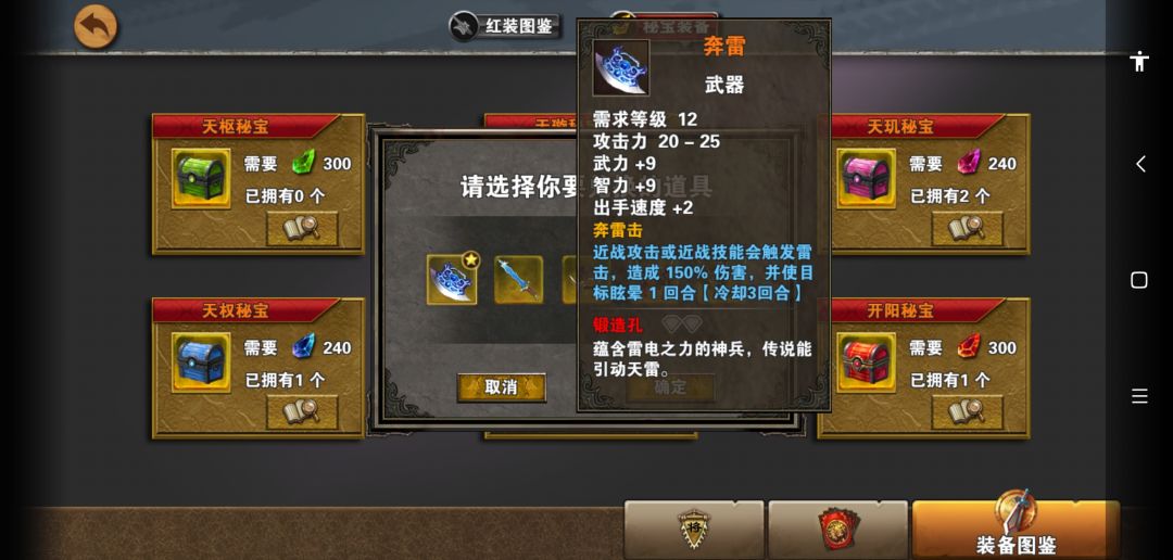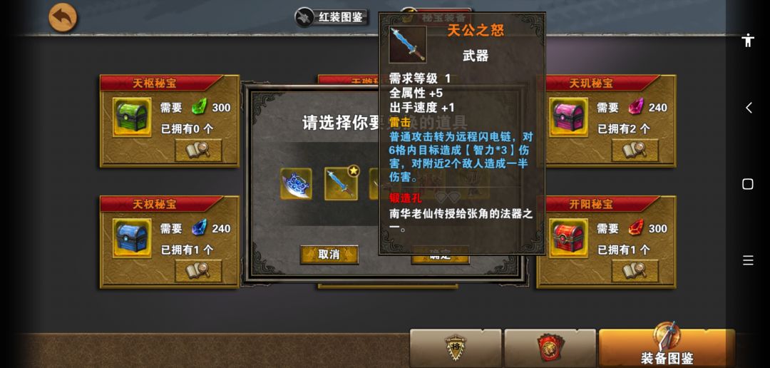 ,打完风伯后过一天再去打张角,能少一次战斗。打boss张角我是一个大招杀了张角,其他兵都是看血线逐个大招斩杀。祝大家刷密保不要像我这样非,300次连一个1孔的奔雷和天公都没看到