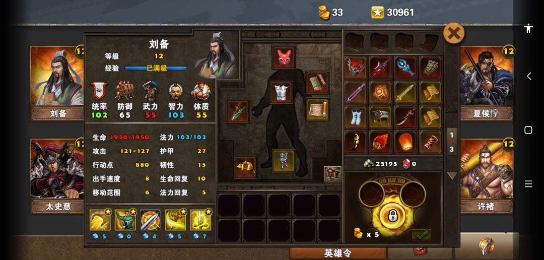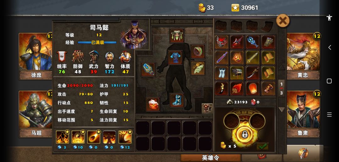 精英黄巾起义本人是用刘备和司马懿打的,大家都清楚司马懿比较短腿所以我就让刘备骑着老鼠坐骑,给司马懿加2移动,正好一个大招可以够到同一平行线的敌人,刘备我是辅助装备,春秋和吴子,让司马懿有很更高的输出。