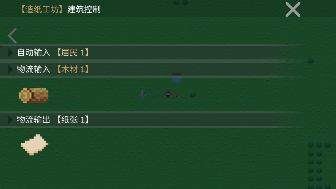 举例:例如造纸工坊需要自动输入1人口,物流输入1木材,输出1纸张。