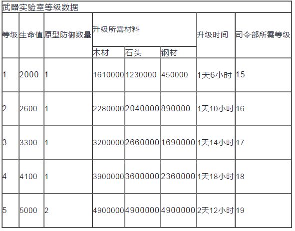 武器实验室本身就是一个防御设施其一样需要材料来升级,而其内部分又可建造4种原型防御设施。