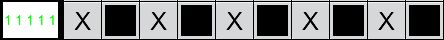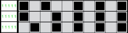 当增加一格,变成一行10格时,不少人可能就会想当然的认为只有两种可能,第1、3、5、7、9列或第2、4、6、8、10列涂黑,如下图:
