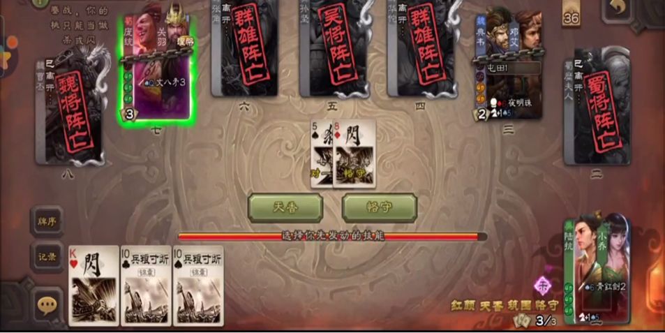 ①和小乔的配合,在国战配合小乔的【天香】和自己的【恪守】双buff可立于不败之地~再加上小乔的【红颜】加大了判红的概率,增加了陆抗摸牌的几率。