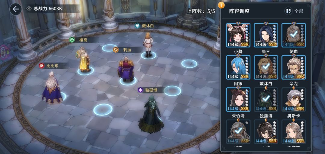 比比東(單攻)。毒菇(控制)。刺血(群攻)。唐烈(坦克)