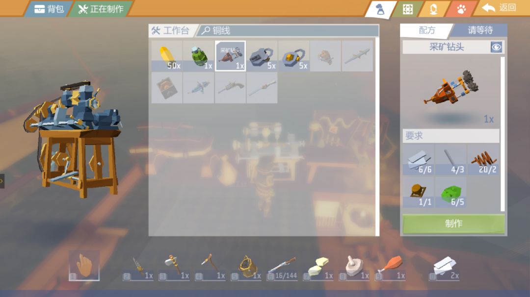 对了,那就制作采矿钻头吧!毕竟,每次进入洞穴挖矿,使用石镐或者什么镐的速度实在太慢了,而且很容易被变异生物袭击。
