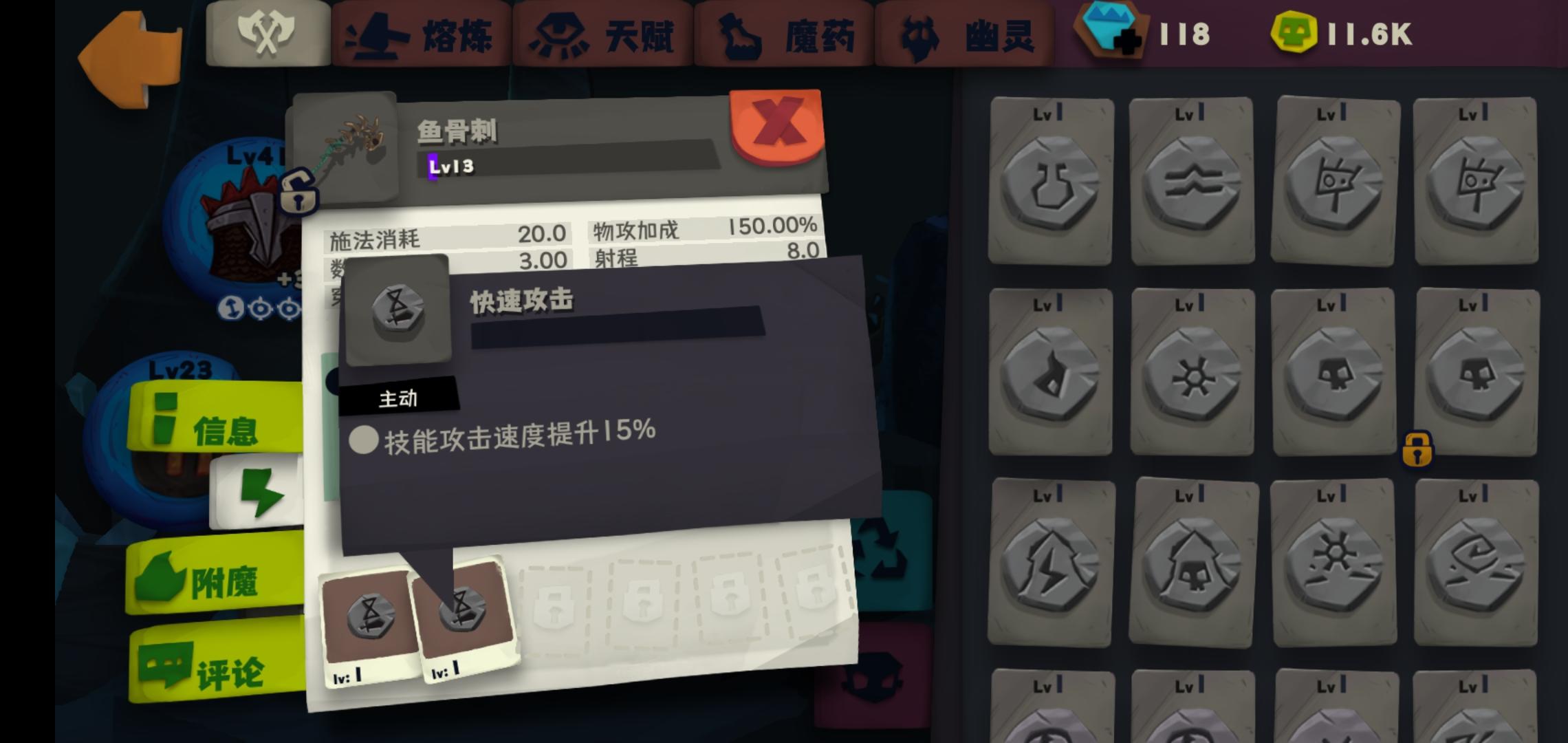 符石可以按照下面去搭配,血爆主要加命中,鱼骨刺主要加攻速(下图不是最好搭配,条件有限dalao勿喷)
