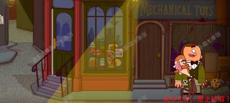 32、去到玩具店外面,得到最右下角一堆垃圾里的零件。然后进入玩具店。玩具店内点击中间的黄色机器人触发剧情,让助手把机器人地面上的一个手臂装好,然后点击黄色机器人本身,装进三个糖果、动物内脏和齿轮,完成组装。出门,机器人去车站。32、1