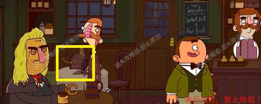36、村庄里各处确认剧情,到最右侧与老太太聊天确认剧情,进到黄框酒馆里,获取各项剧情。同时右侧眼镜男这里的发霉奶酪拿上,酒保面前的杯子也拿上。36