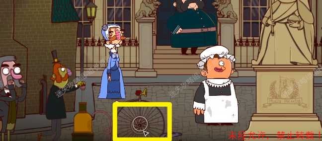 28、之后去女王雕像处,对中间的自行车使用幸运猴爪,得到轮子,然后去集市,到裁缝店里,对缝纫机使用转轮修好,出门后触发剧情,通路打开,前往后进入屠宰店。28、1