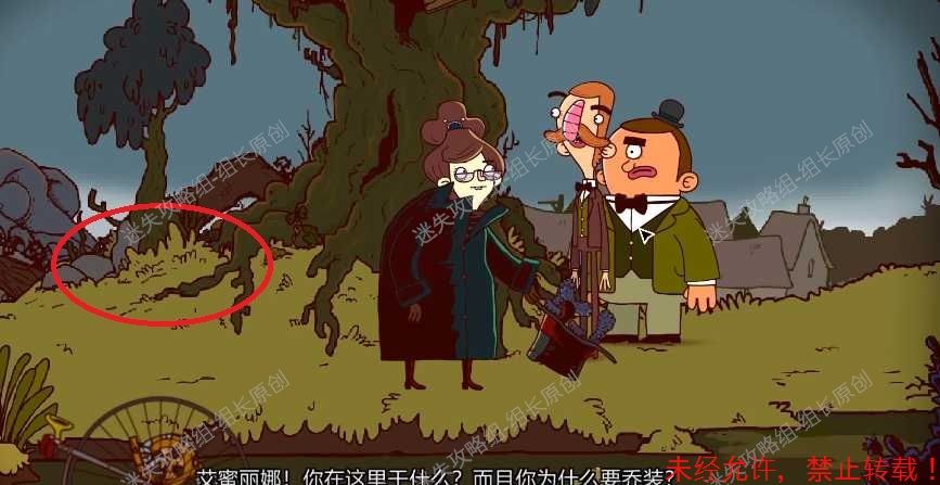 39、苹果树下有一堆剧情要获取。最后能得到照片证据。剧情结束后边上红圈这里会刷新一个木头,记得拿上。39