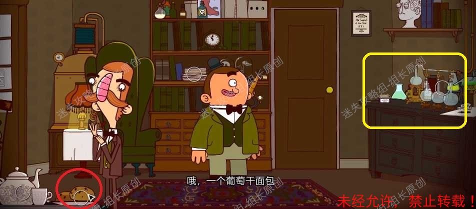 64、广场右侧的房子进入后有人正厕所奋斗。红圈处得到葡萄面包。之后去黄框处点击查看各个信息。依照桌子边上的笔记,进行各种药剂的调制(依照笔记内容点击对应颜色即可得到),各种药剂都调制(总共三种可调),然后去异国商店。64