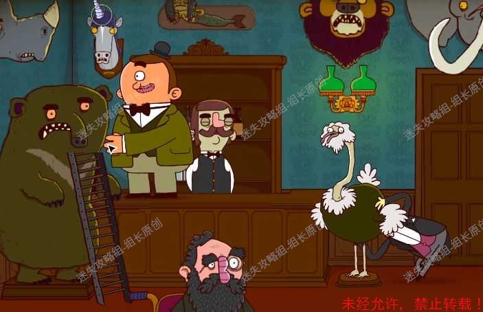 21、与俱乐部里面的各人交谈完成剧情,之后去右侧跑步机这里多次使用跑步机,触发剧情(鸵鸟享福)。到左侧的熊标本这里,用蛋筒换下独角兽的角,然后把角和手摇机组装在一起。去监狱。21、1